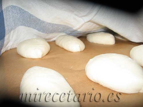 Mezclar los ingredientes y amasar hasta conseguir una masa fina y elástica ( o utilizar la máquina de pan ), dejar reposar 1 hora en lugar templado, desgasificar y dividir en trozos de unos 50 g, bolear y dar una forma ligeramente alargada a la bola, cubrir con un paño y dejar levar 1 hora, precalienta el horno a máxima temperatura con la piedra dentro, yo la tengo colocada sobre la rejilla en la posición más baja del horno, es importante no moverla de su sitio ya que se va a calentar mucho y podría ser peligrosa.