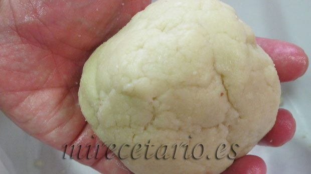 - Primero elaboramos el mazapán, tan sencillo como mezclar el azúcar con la almendra y la clara de huevo, es importante amasar con las manos, a base de amasar, la almendra irá soltando sus aceites y poco a poco con el calor de nuestras manos iremos haciendo una masa más manejable, si vemos que se cuartea mucho agregar un poco más de clara de huevo.