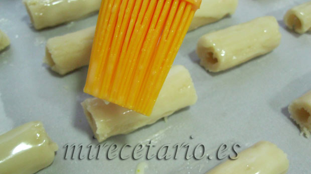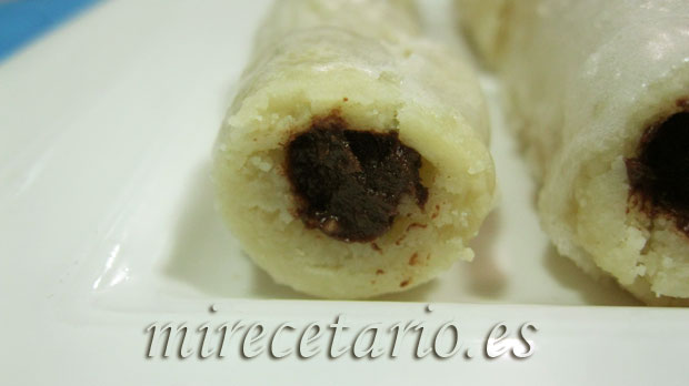 - Cuando los huesos se hayan enfriado rellenamos con el chocolate por los dos extremos y nos los comemos.