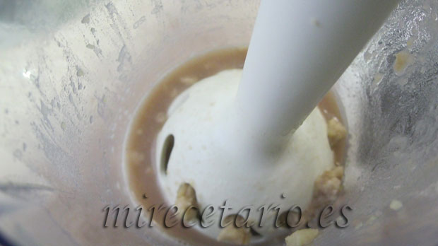 2. Retirar la segunda piel de las castañas (cuando se hayan enfriado un poco) y triturar con dos vasos del agua de la cocción.
