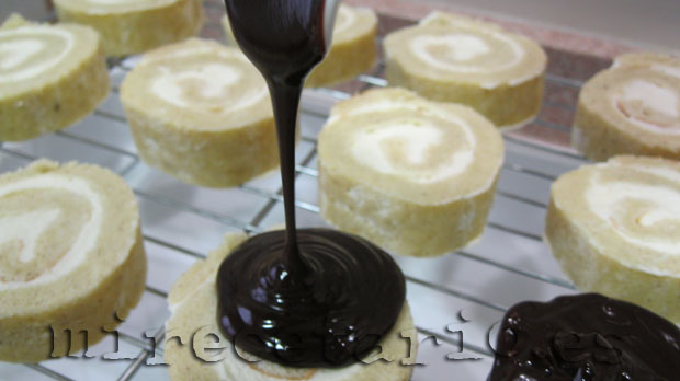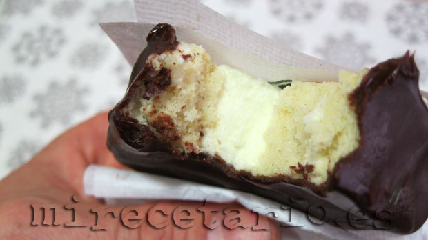 El baño de chocolate me quedó muy líquido por lo que nada mas sacarlo del frigo, al tocarlo te quedabas con la cobertura en los dedos, la próxima vez lo haré sin poner agua para que quede más durito, me gusta que la cobertura de chocolate cruja un poco y el relleno menos dulce, será que de mayor mis gustos han evolucionado 😉