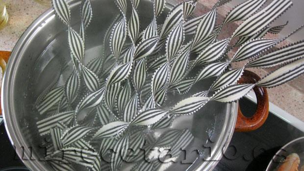 3. Cocemos los lingua cebra en abundante agua hirviendo con sal el tiempo que indique el paquete, ya sabéis que cada pasta tiene tu tiempo de cocción.