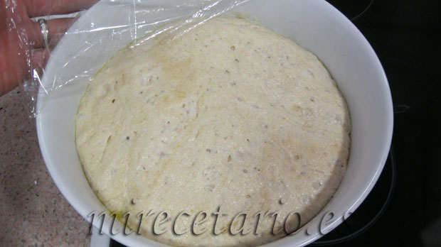 - Untar un bol con aceite, depositar la masa y hacerla rodar para que también quede impregnada de aceite, tapar con papel film e introducir en el frigorífico.